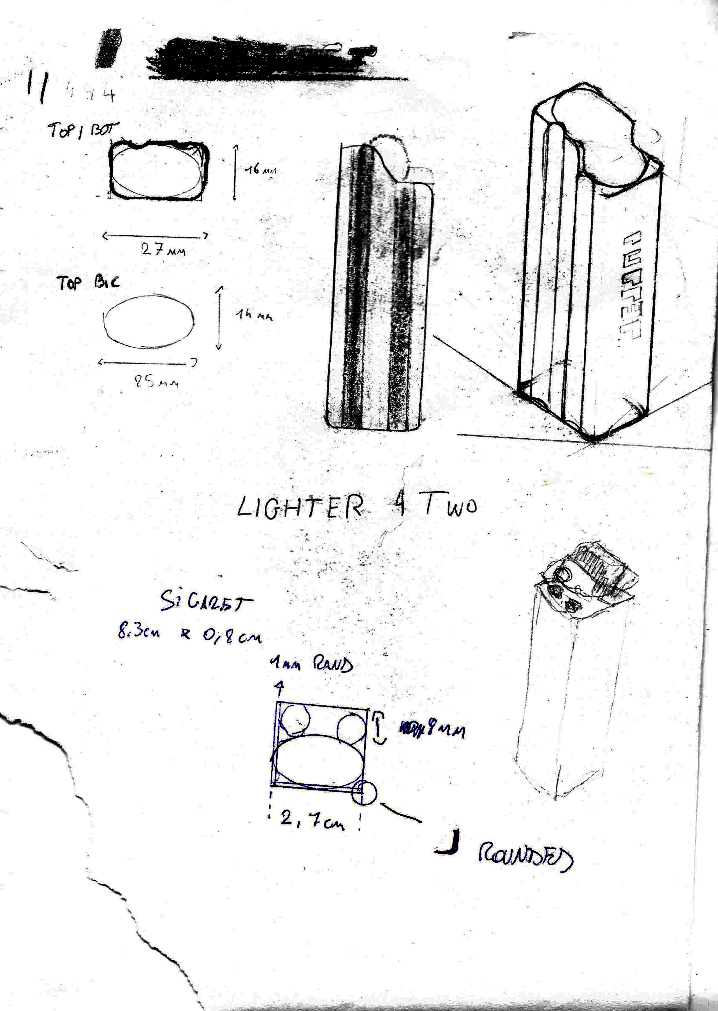 As you can see, the initial sketches were rough. In the first version, the cigarettes simply rested on top of the case, unsecured. Visually striking, but practically unusable.